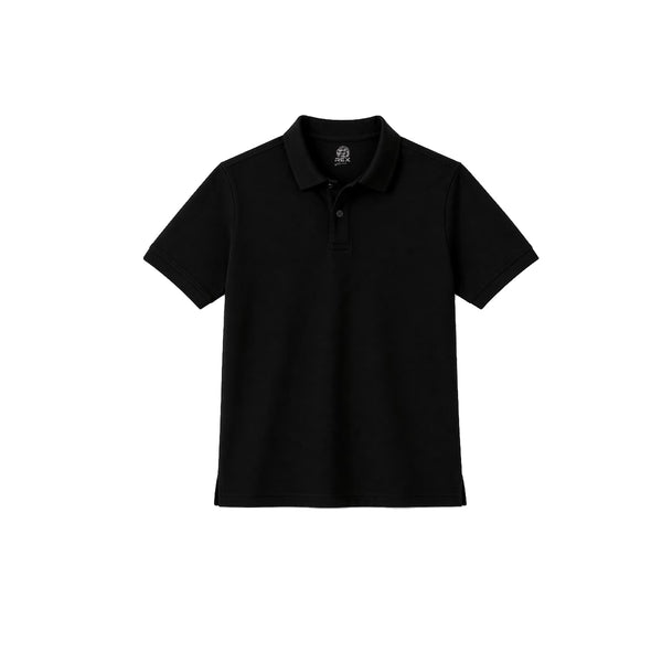 classic Unisex Black Polo with Ribbed Collar and smooth Cotton Finish.